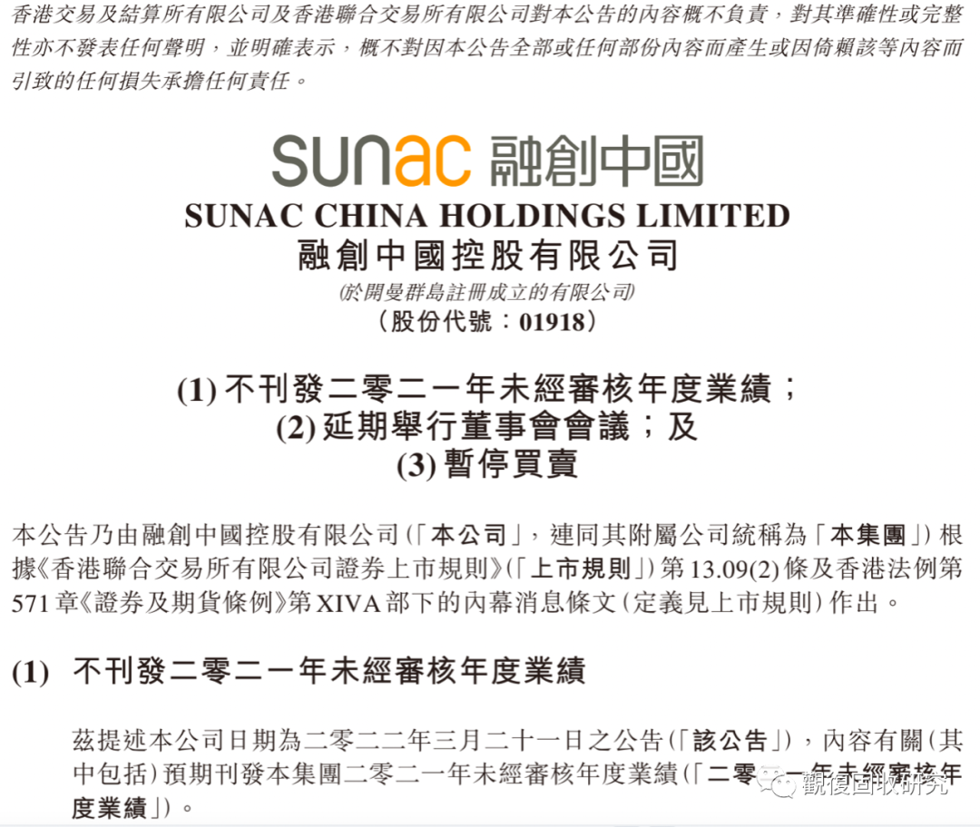 按目前进度观察,融创估计大概率没法在3天内搞到钱了,因为它已经安排把股票在2022.04.01停牌了,免得债务违约时影响到股价稳定,气势就已经输了,